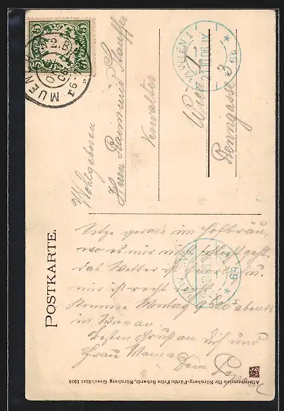 alte Ansichtskarte, gelaufen 1906, Eckknick re. unten, guter Zustand