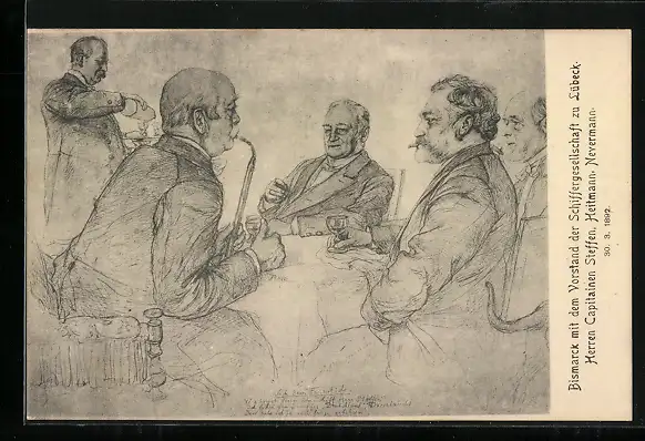 Künstler-AK Bismarck mit dem Vorstand der Schiffergesellschaft zu Lübeck