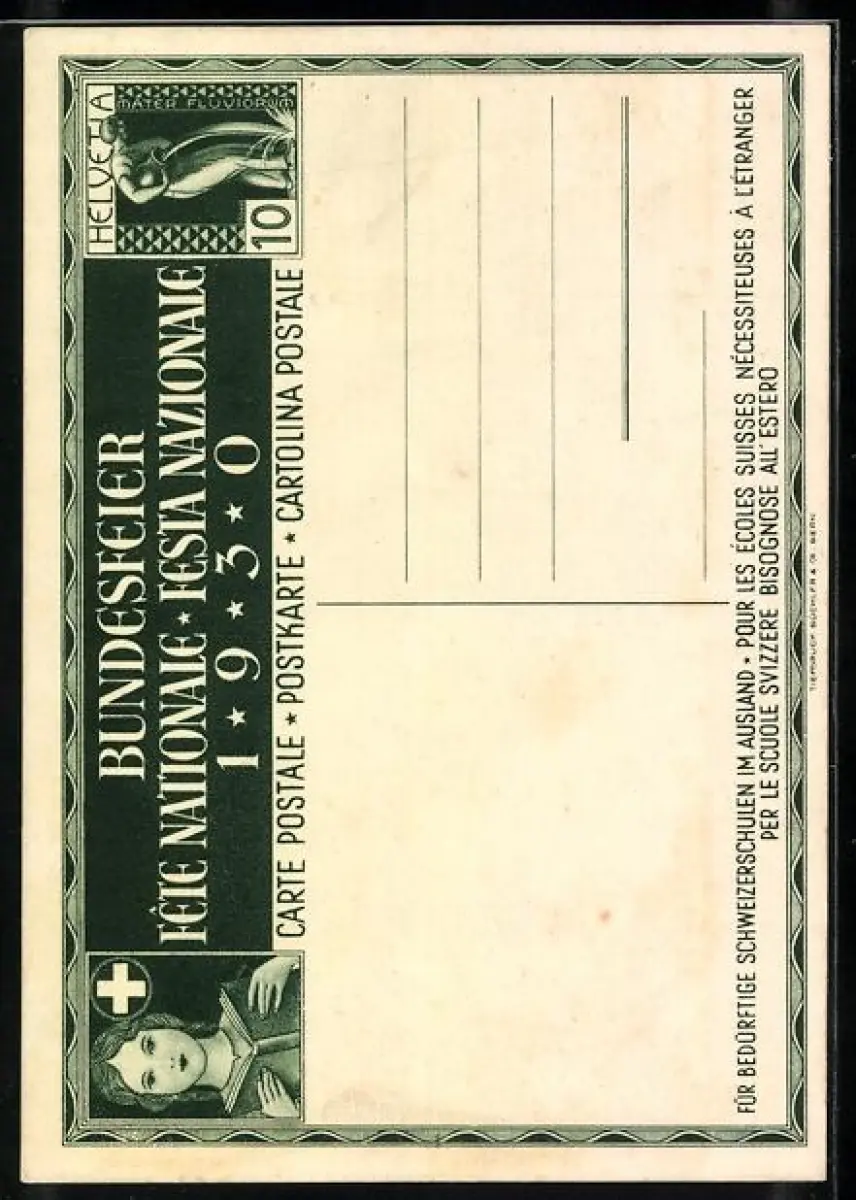 Künstler-AK Bundesfeier 1930, Schweizer Kinder mit Flaggen am Lagerfeuer