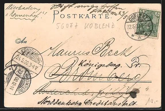 alte Ansichtskarte, gelaufen 1900, guter Zustand