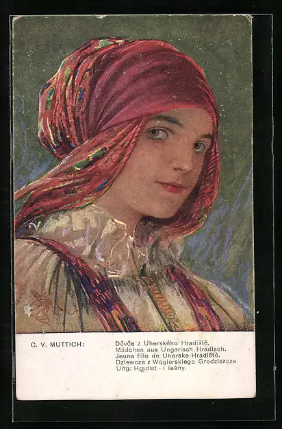 Künstler-AK Camil Vladislav Muttich: Mädchen aus Ungarisch Hradisch in Tracht
