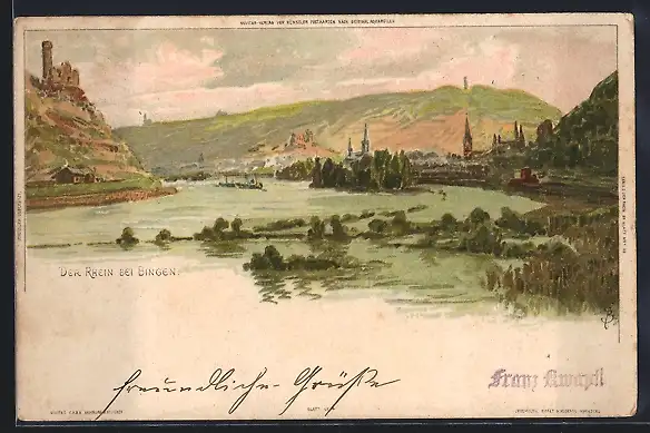 Künstler-AK Carl Biese: Bingen / Rhein, Rheinpartie
