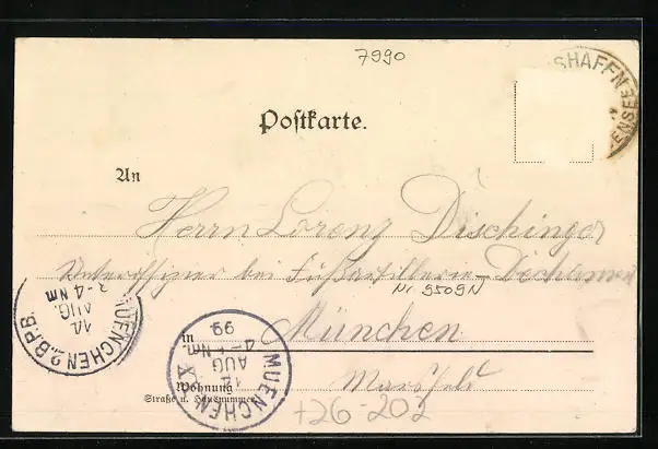 alte Ansichtskarte, gelaufen 1899, Briefmarke entfernt, Eckknick unten li., guter Zustand