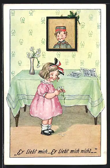 Künstler-AK Carl Diehl unsign.: Er liebt mich - er liebt mich nicht..., Mädchen beim Blumenorakel