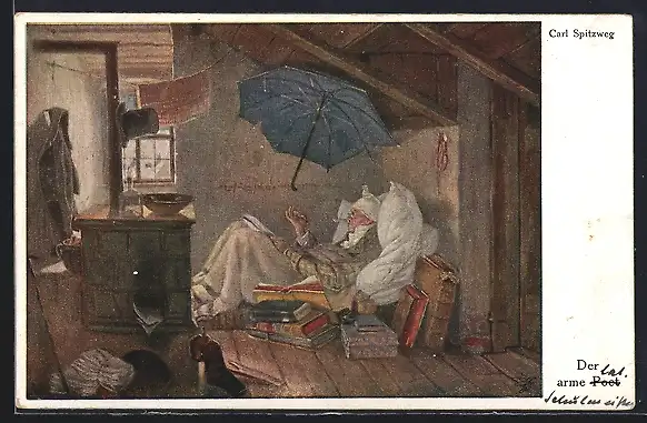 Künstler-AK Carl Spitzweg: der arme Poet in der Dachstube
