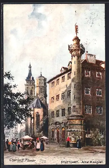 Künstler-AK Charles F. Flower: Stuttgart, Markt an der alten Kanzlei