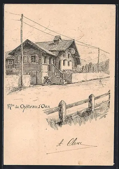 Künstler-AK Chateau d`Oex, Ortspartie am Gasthaus