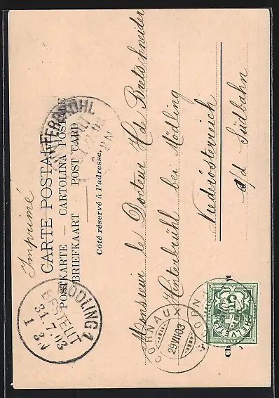alte Ansichtskarte, gelaufen 1903, Einriss re. mittig, guter Zustand