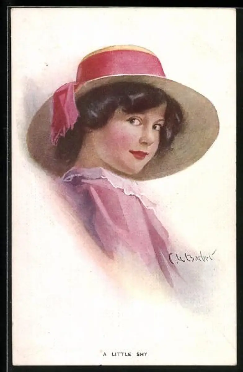 Künstler-AK Court Barber: A little shy, Frau in rosa Bluse mit Hut