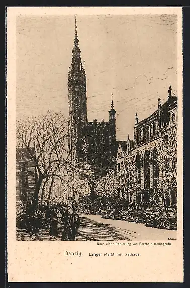 Künstler-AK Danzig, Langer Markt mit Rathaus