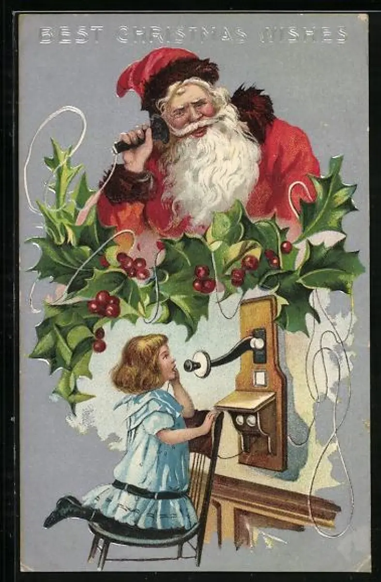 Künstler-AK Der Weihnachtsmann empfängt den Anruf eines Kindes