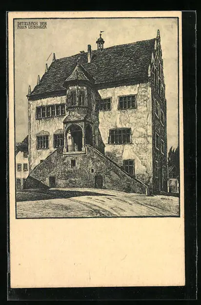 Künstler-AK Dettelbach, Frontalansicht des Rathauses