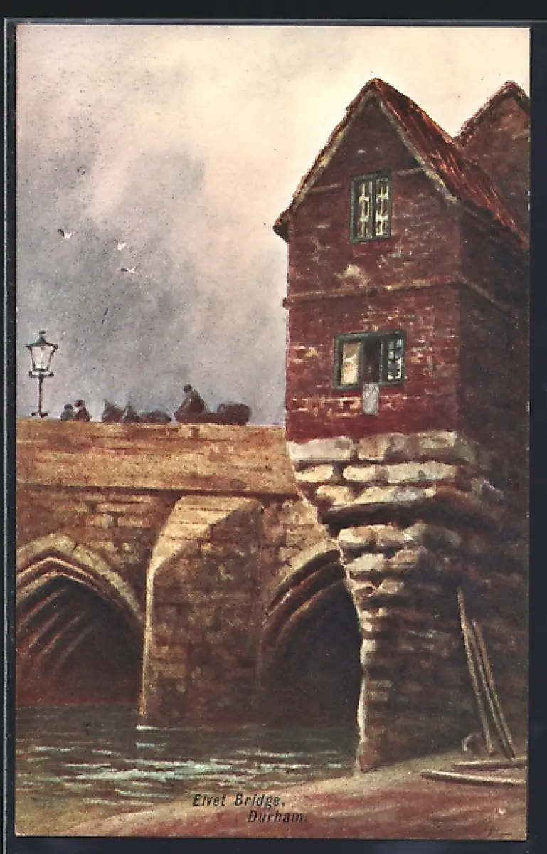 Künstler-AK Durham, View of the Elvet Bridge with bridge house