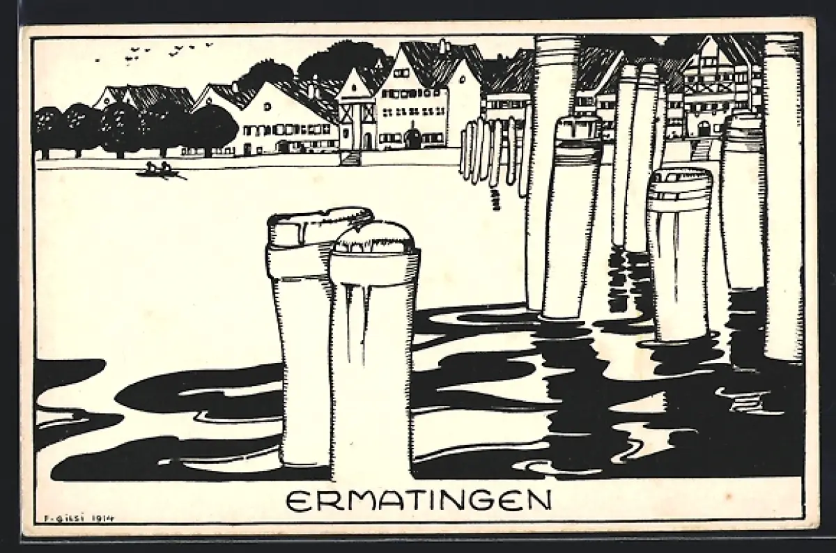 Künstler-AK Ermatingen, Stadtblick vom Wasser aus