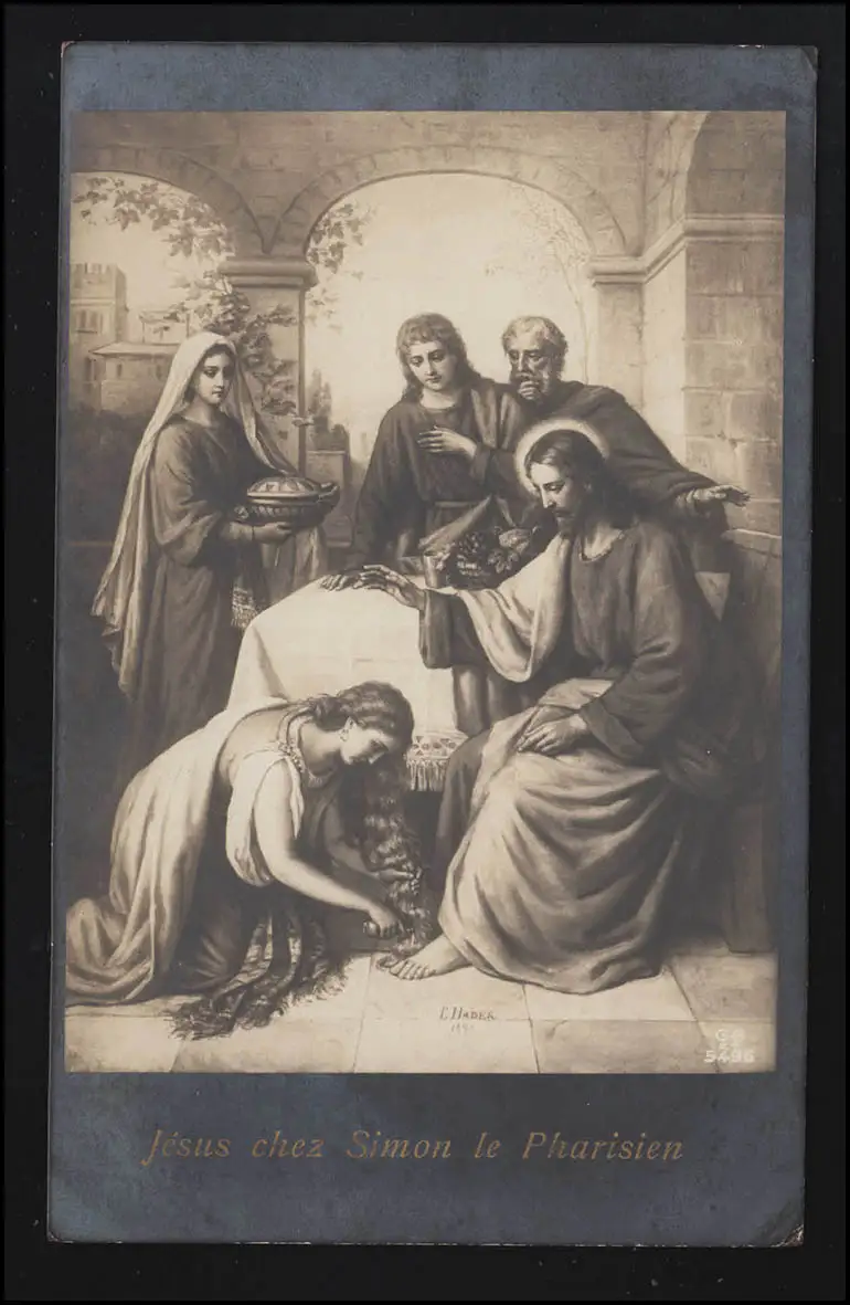 Künstler AK Ernst Hader Jesus Gast Pharisäer Maria Magdalena Feldpost 10.11.1914