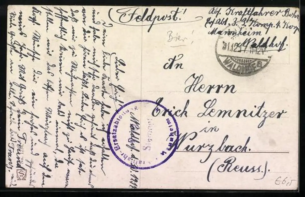alte Ansichtskarte, gelaufen 1917, guter Zustand