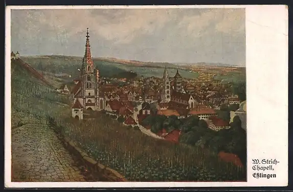 Künstler-AK Esslingen / Neckar, Ortspanorama