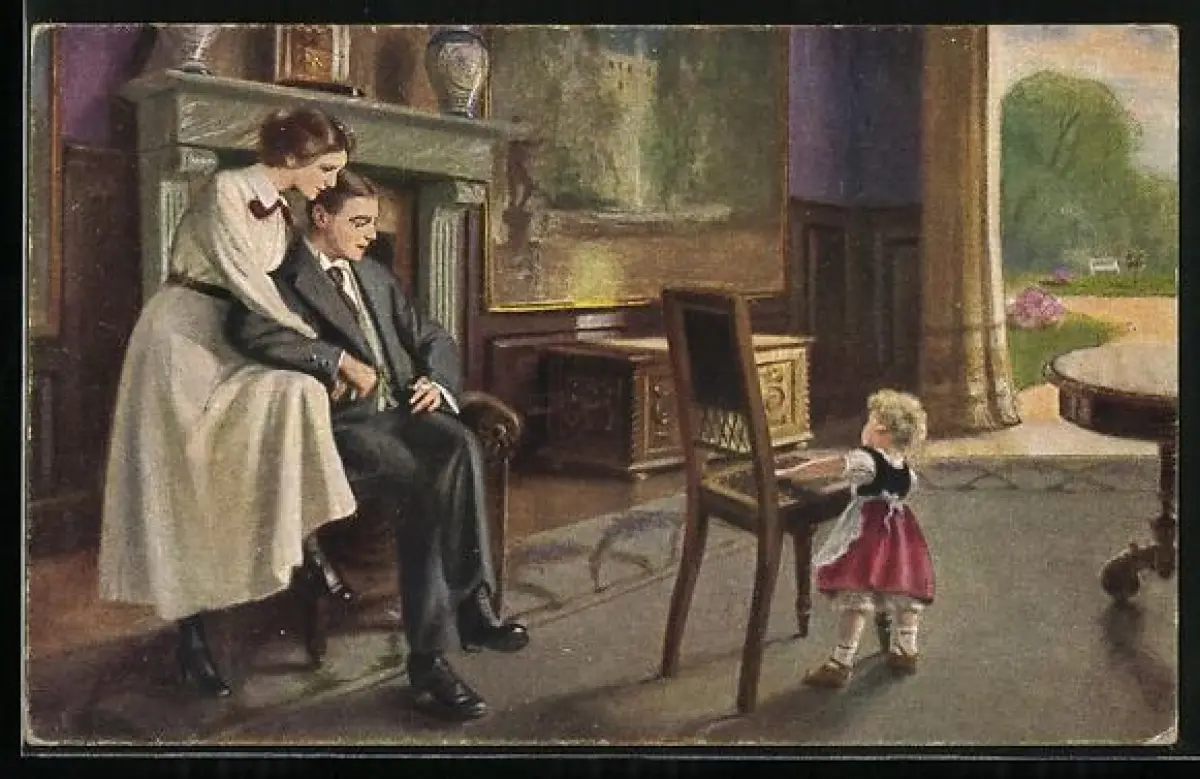 Künstler-AK F. Zemt: Eltern und ihr Töchterchen am Kamin