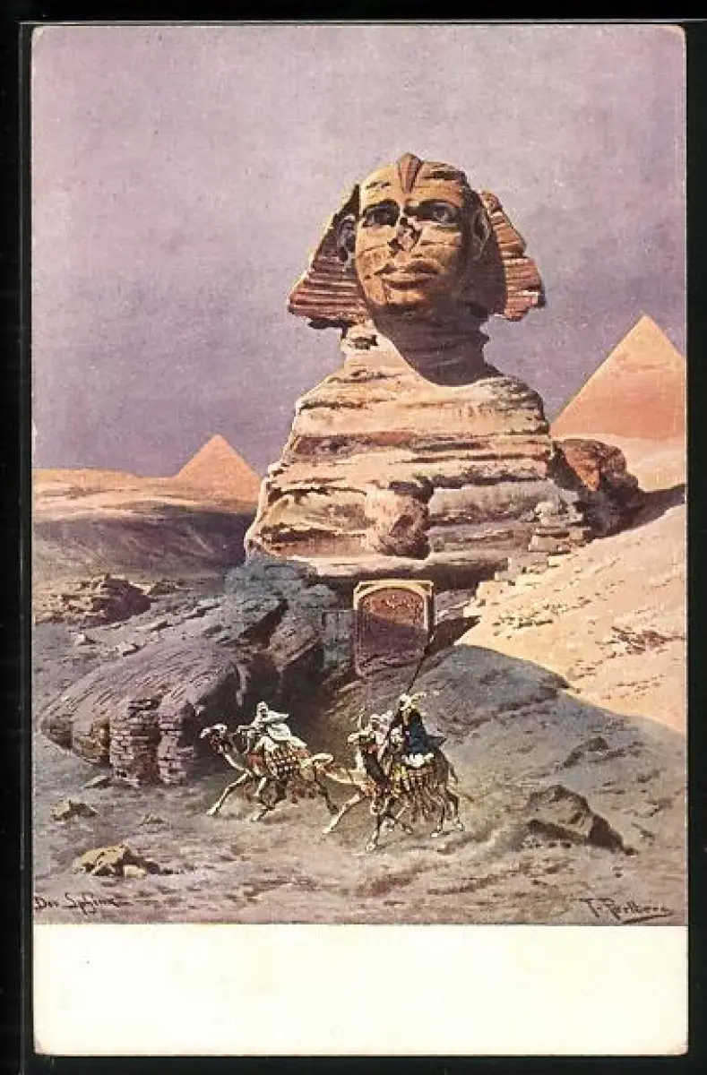 Künstler-AK F.Perlberg: Sphinx, Kamele vor der Sphinx
