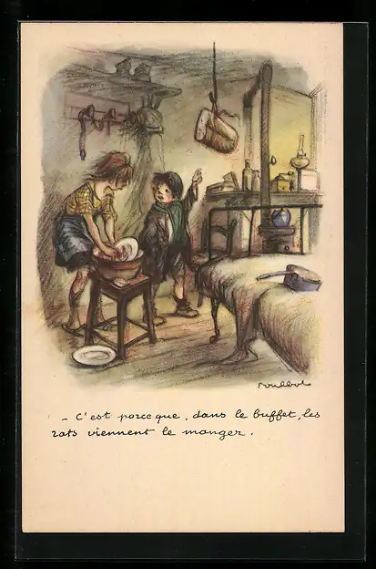 Künstler-AK Francisque Poulbot: Mutter wäscht Geschirr