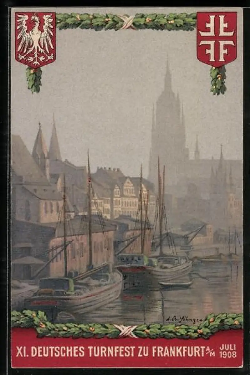 Künstler-AK Frankfurt, XI. Deutsches Turnfest Juli 1908 Wert 5 RPf