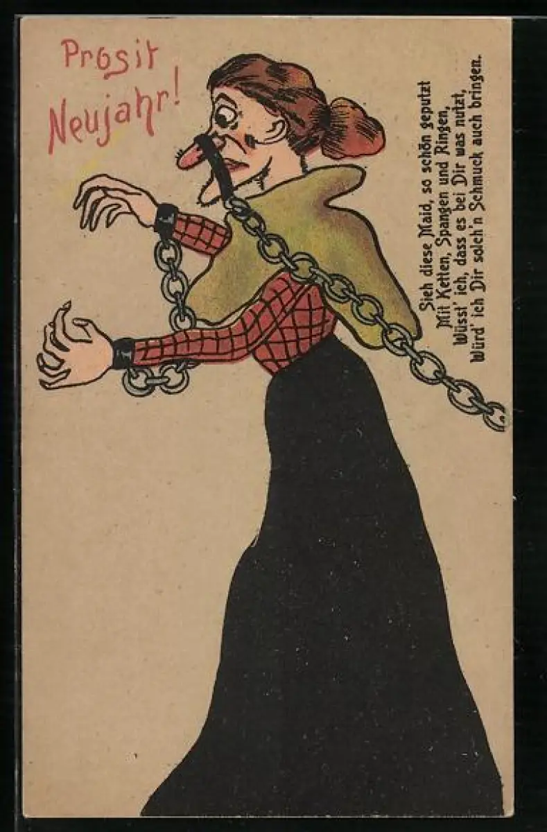 Künstler-AK Frau in Ketten, Sieh diese Maid, so schön geputzt...