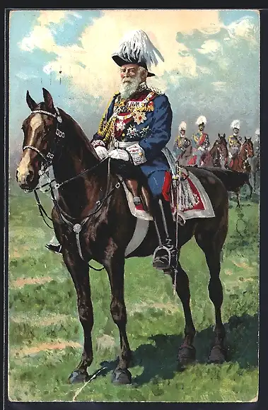 Künstler-AK Fritz Bergen: Prinzregent Luitpold von Bayern in Uniform zu Pferd