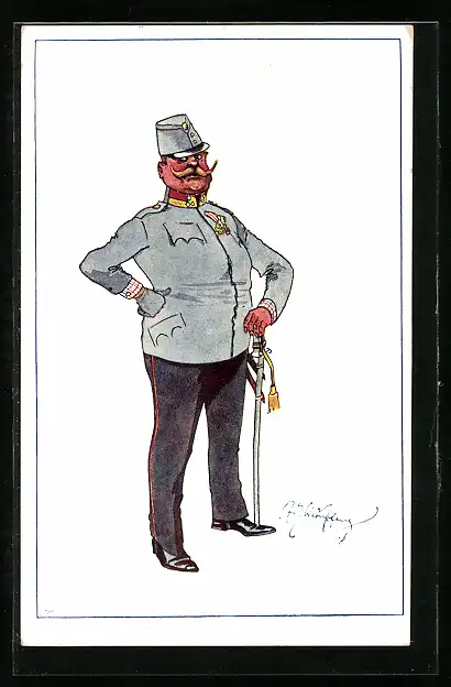 Künstler-AK Fritz Schönpflug: korpulenter Soldat in seiner Uniform