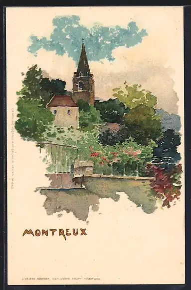Künstler-AK Fritz Voellmy: Montreux, Ortsansicht