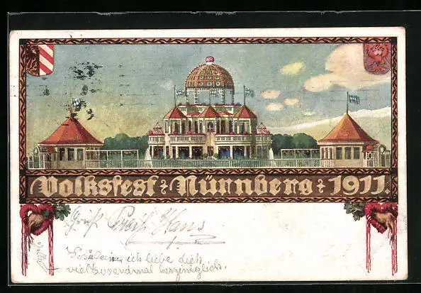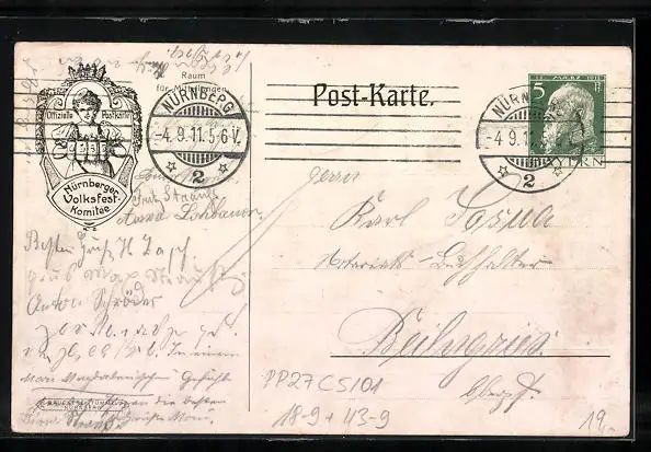 Künstler-AK Ganzsache Bayern PP27C5 /01, Nürnberg, Volksfest 1911