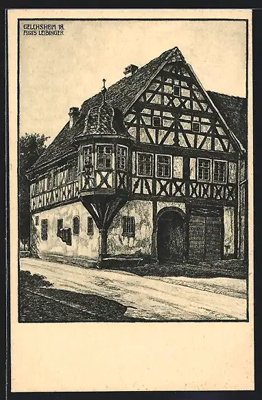 Künstler-AK Gelchsheim, Partie am Rathaus