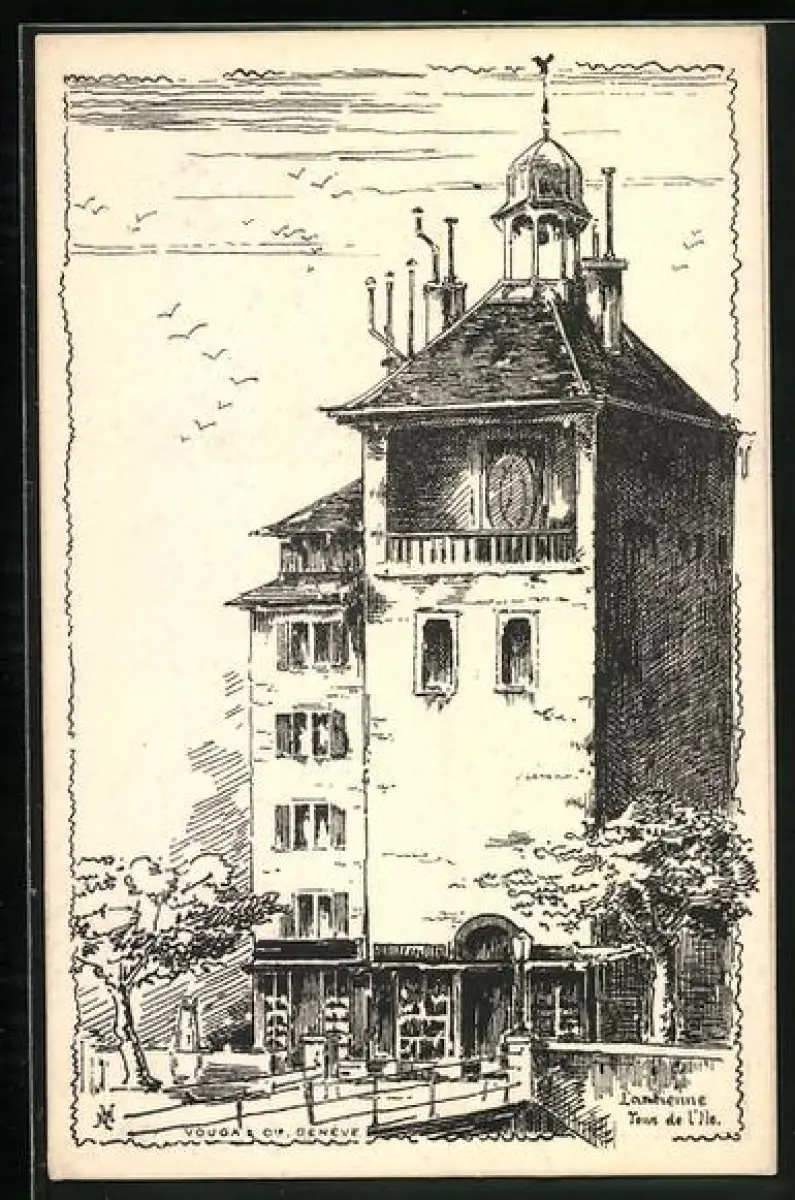 Künstler-AK Geneve, l`ancienne Tour de l`Ile