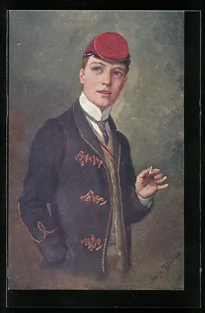Künstler-AK Georg Mühlberg: Student mit Zigarettenstummel in der Hand