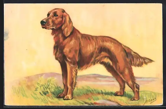 Künstler-AK Golden Retriever auf einer hellen Wiese