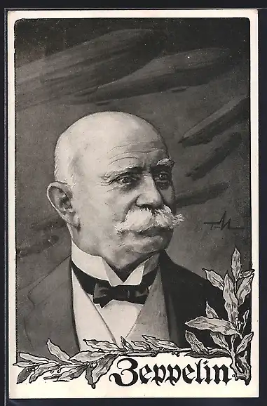 Künstler-AK Graf Zeppelin im Frack und Lorbeerzweig