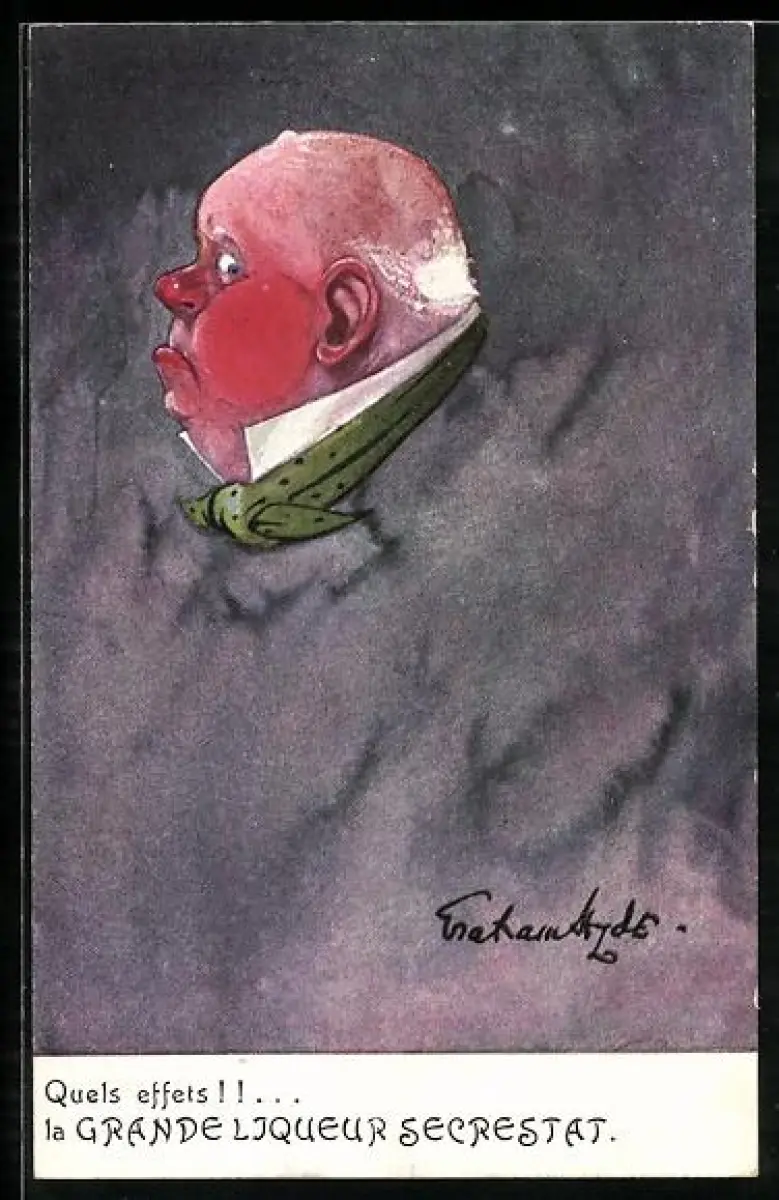 Künstler-AK Grand Liqueur Secrestat, Quels effets, Mann mit Übergewicht