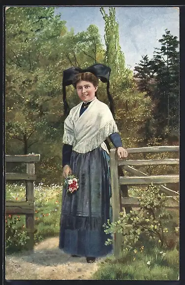 Künstler-AK H. Hoffmann: Markgräflerin in Tracht an einem Tor