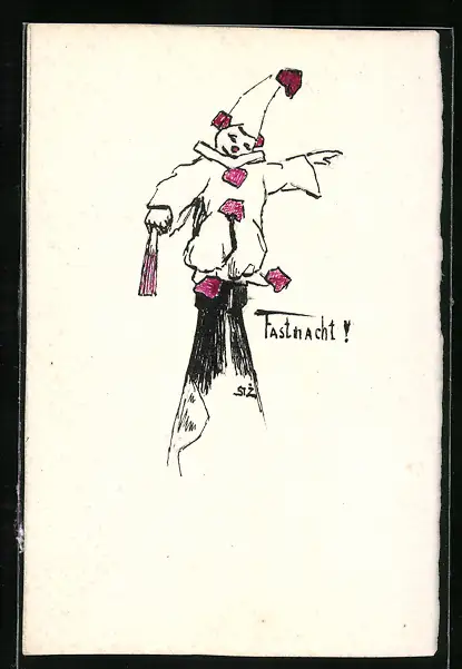 Künstler-AK Handgemalt: Harlekin zu Fastnacht