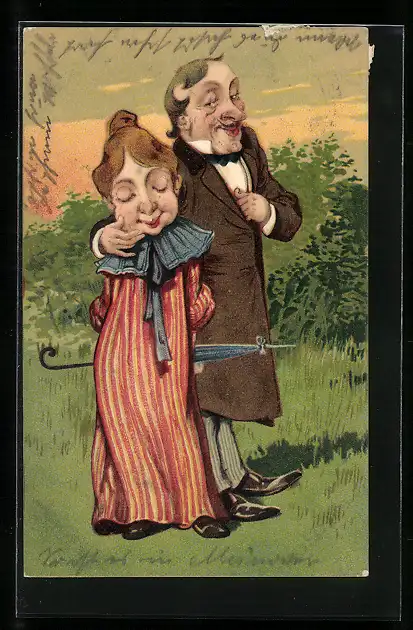 Künstler-AK Handgemalt: Mann legt Frau den Arm um die Schultern