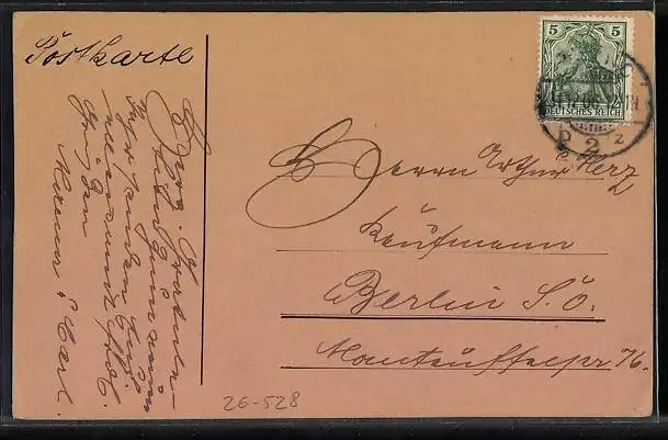 alte Ansichtskarte, gelaufen 1906, Eckknick re. oben, guter Zustand