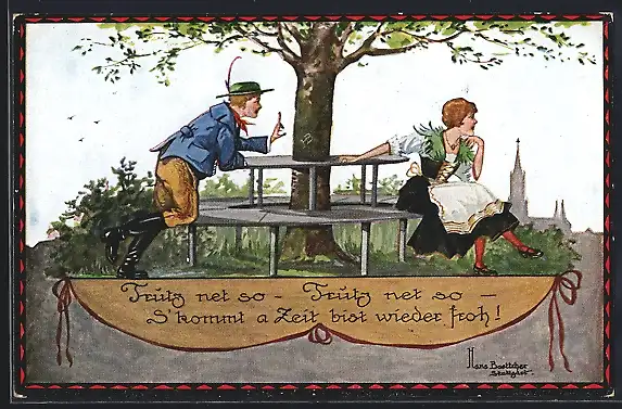 Künstler-AK Hans Boettcher: Trutz net so..., Liebespaar