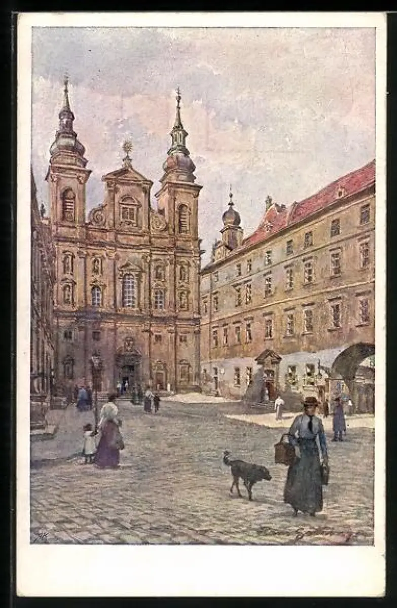 Künstler-AK Hans Götzinger: Wien, Universitätsplatz mit Jesuitenkirche