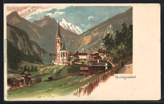 Künstler-AK Heiligenblut, Ort mit Kirche um 1900