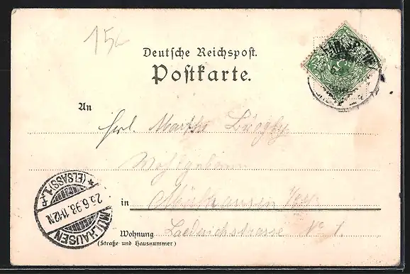 alte Ansichtskarte, gelaufen 1898, Eckknick oben re., guter Zustand