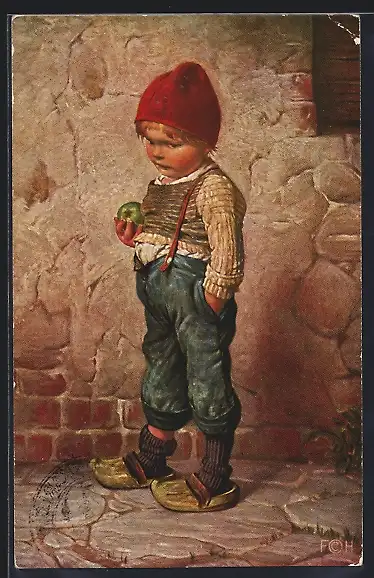 Künstler-AK Hermann Kaulbach: Hansel, Knabe mit rotem Apfel in der Hand