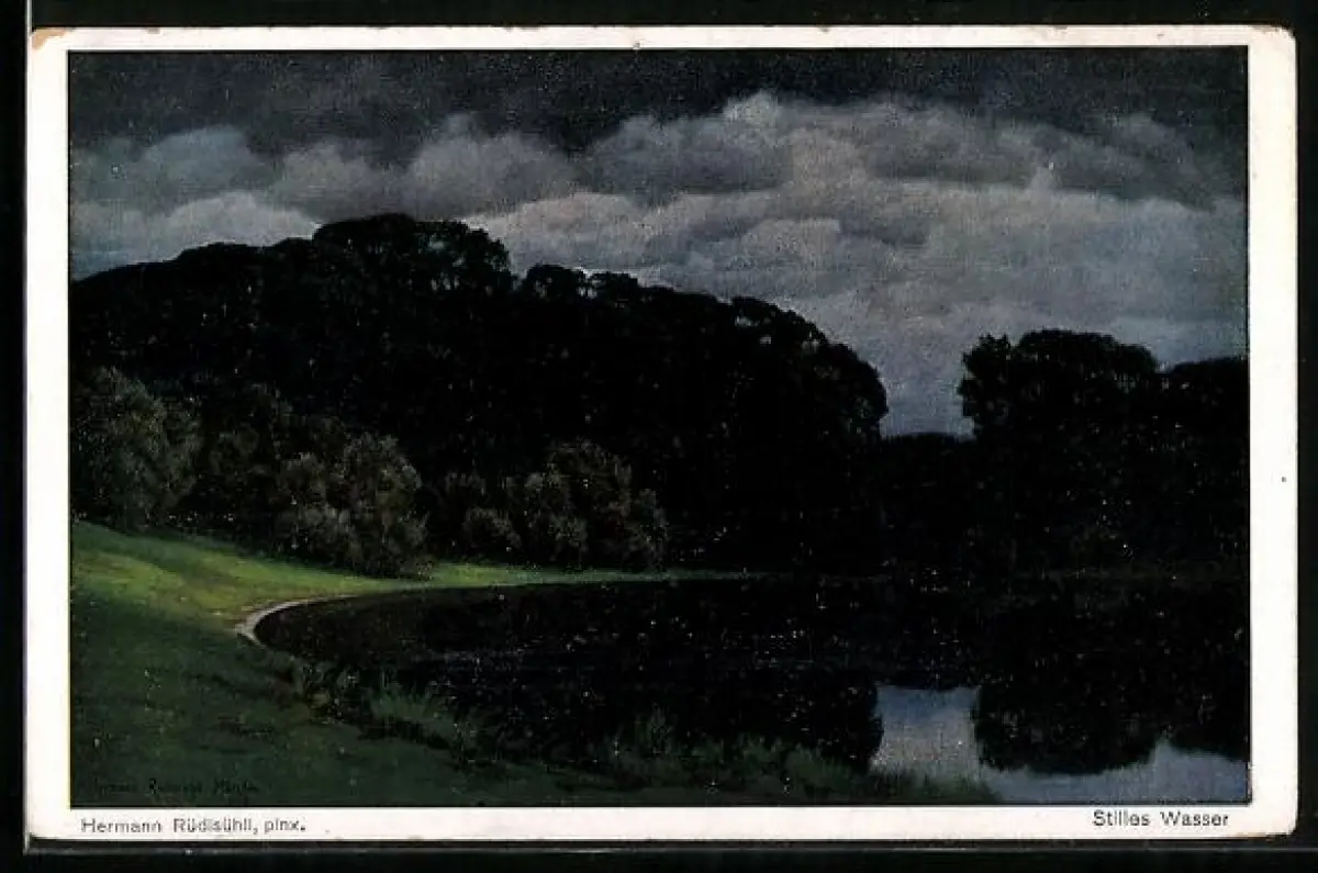 Künstler-AK Hermann Rüdisühli: Stilles Wasser, Partie an einem See