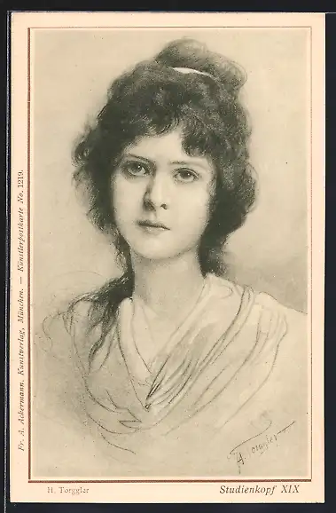 Künstler-AK Hermann Torggler: Portrait einer jungen Dame mit hochgestecktem Haar