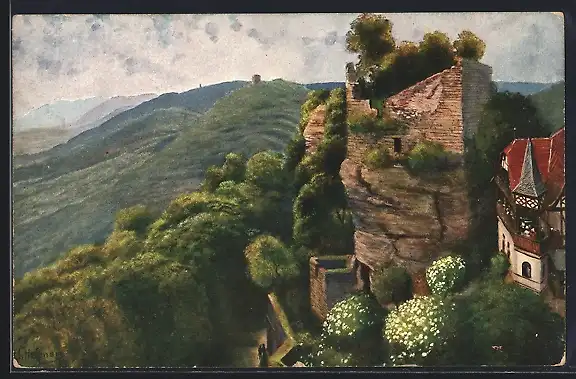 Künstler-AK Hochbarr, Blick auf Geroldseck und Brotschberg
