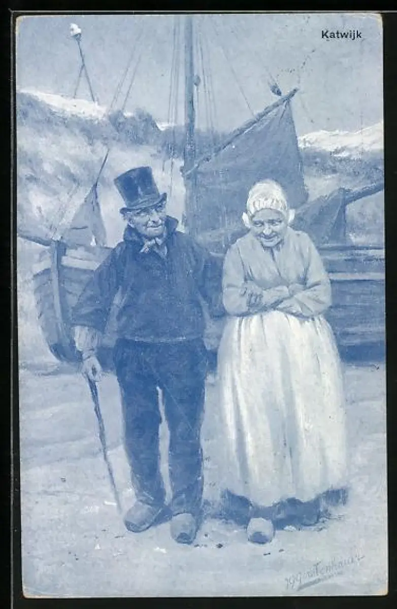 Künstler-AK Johan Georg Gerstenhauer: Katwijk, Älteres holländisches Paar vor einem Boot