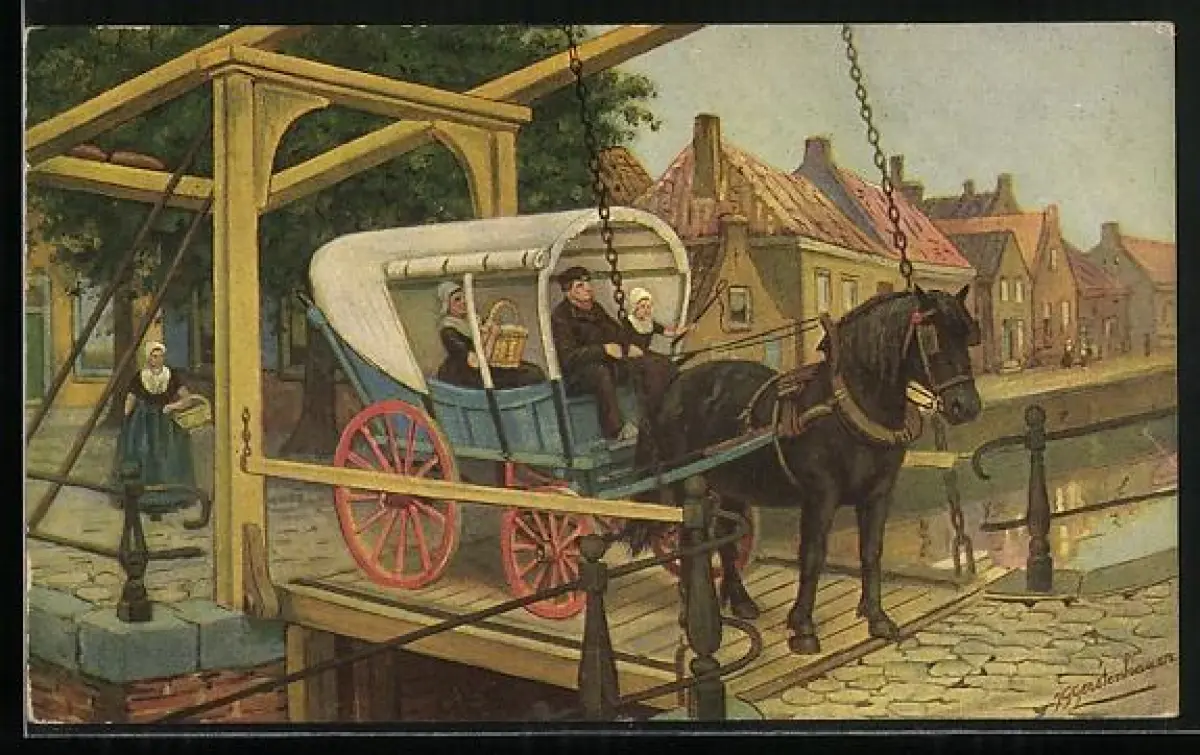Künstler-AK Johan Georg Gerstenhauer: Pferdekutsche auf der Zugbrücke